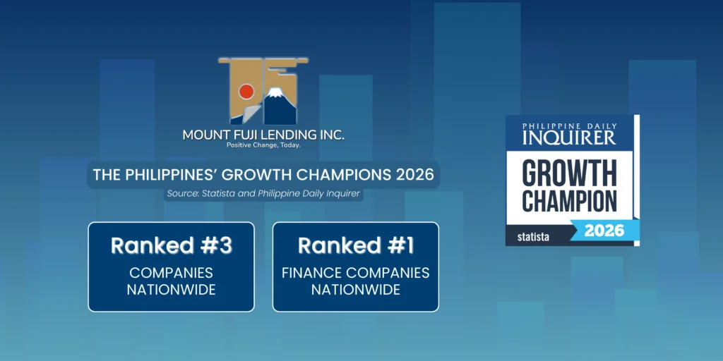 Mount Fuji Lending, Inc. ranks #3 in the Philippines’ Growth Champions 2026, a national ranking of the country’s fastest-growing companies based on revenue growth between 2021 and 2024.